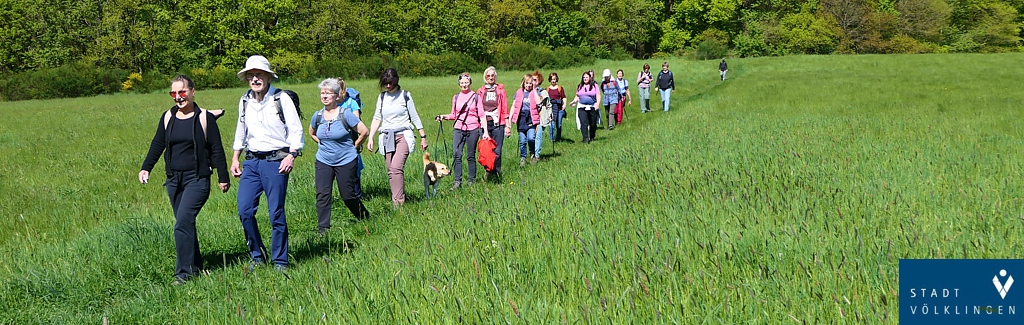 Beschreibung: Nach dem Start wandern wir zwischen Wiesen und Feldern und erfreuen unsere Augen mit den wunderschönen Ausblicken in die Weite der Landschaft. Etwas später passieren wir die „Derler Kipp“, eine ehemalige Schlackenhalde, und gönnen uns an einer Bank eine kleine Trinkpause. Danach sind wir im abwechslungsreichen Wald unterwegs und entdecken einen Grenzstein von 1771, der die ehemalige Banngrenze zwischen der Stadt Völklingen und der Abtei Wadgassen markiert. Nach der Überquerung einer Landstraße wandern wir überwiegend auf breiten Forstwegen abwärts und gönnen uns an einem kleinen Waldweiher eine weitere kurze Pause. Vorbei an einer gefassten Quelle „geht“ es dann zurück zum Ausgangspunkt unserer abwechslungsreichen Wanderung rund um den Stadtteil Röchlinghöhe.